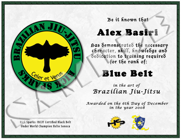 Sample BJJ Rank Certificate